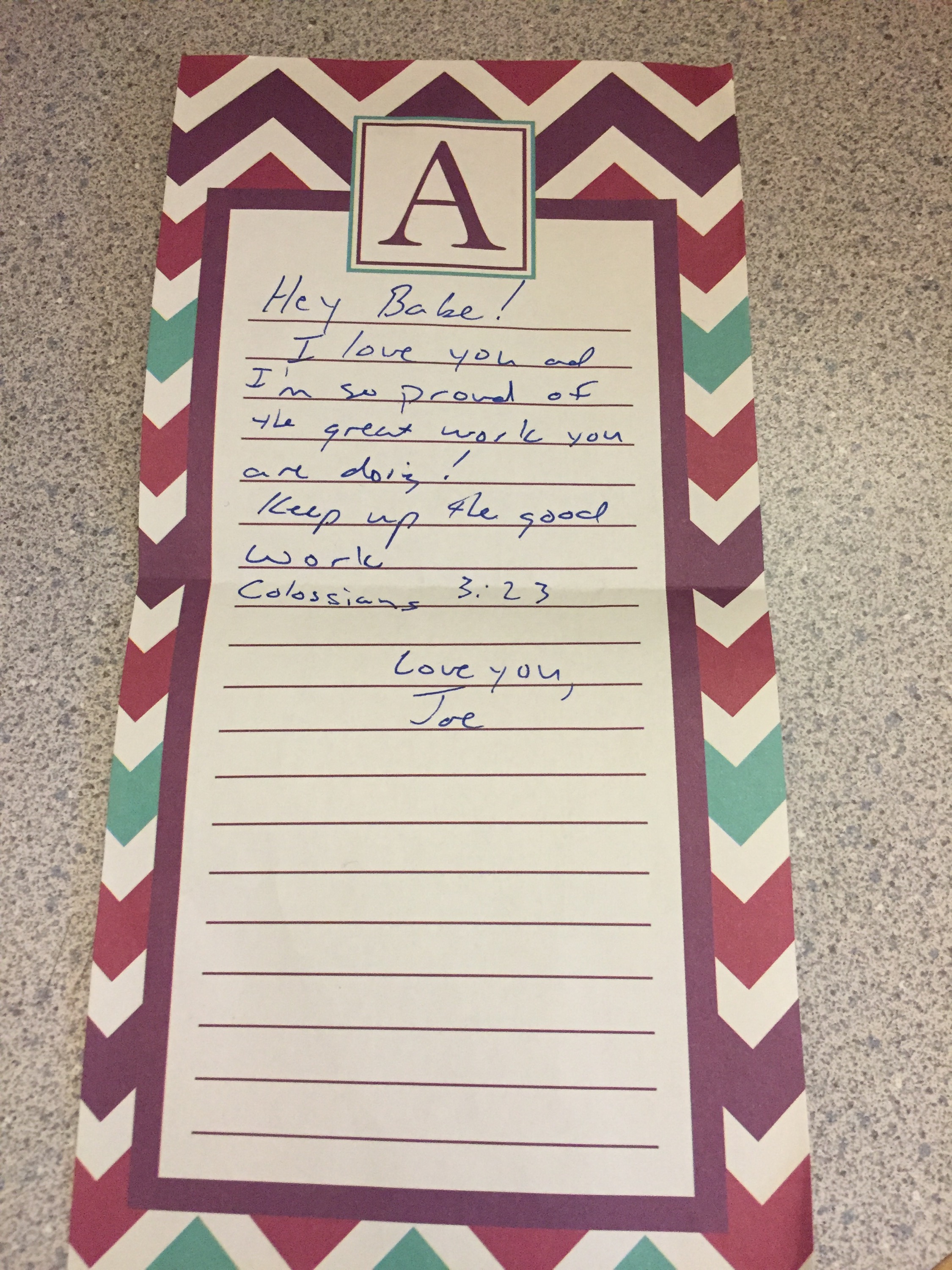 Thank you for writing me a sweet note and sneaking it into my lunch box today. I’m so grateful for your encouragement.